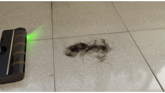 為了驗(yàn)證這項(xiàng)技術(shù)的實(shí)際效果,我們模擬了家里毛發(fā)清潔場(chǎng)景。我們用一些大約20公分與40公分兩種長(zhǎng)度的頭發(fā)散落在地面上,來(lái)模擬日常落發(fā)較多的區(qū)域。然后將吸塵器調(diào)至中度風(fēng)力模式,沿著毛發(fā)放置區(qū)域往復(fù)運(yùn)行2次。清潔結(jié)束后,我們?nèi)∠聺L刷觀察,發(fā)現(xiàn)兩種長(zhǎng)度的頭發(fā)都沒(méi)有出現(xiàn)纏繞在刷面。針對(duì)這個(gè)結(jié)果我們?cè)俅稳硬⑦M(jìn)行二次測(cè)試,結(jié)果依然如此,滾刷上并無(wú)毛發(fā)殘留。通過(guò)觀察塵杯能夠發(fā)現(xiàn),大多毛發(fā)在整個(gè)過(guò)程中被切碎至2-5公分的碎發(fā),其中稍長(zhǎng)一點(diǎn)的被強(qiáng)勁的旋風(fēng)吸力在塵杯中混成圓團(tuán)狀。